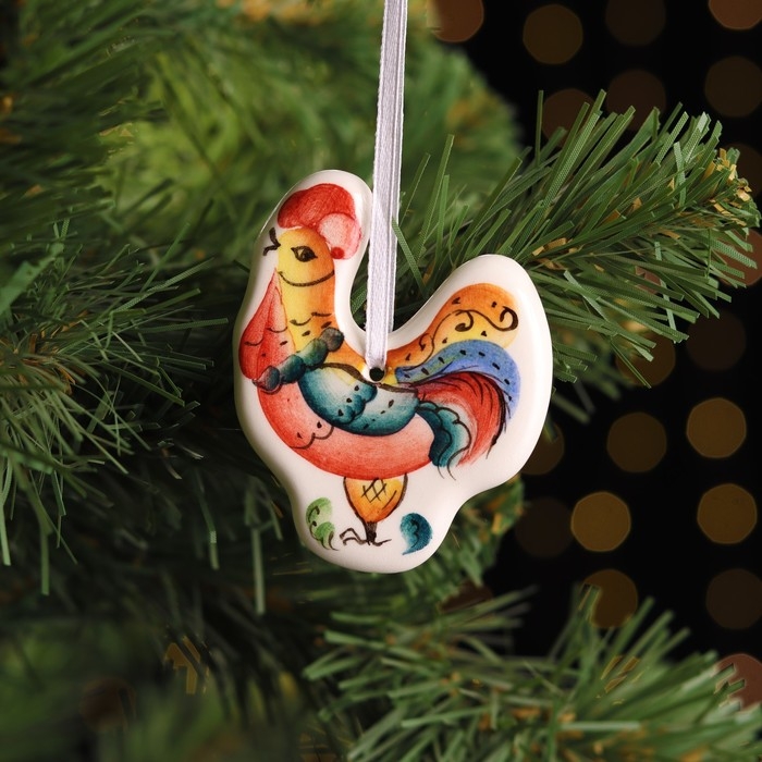 Ёлочная игрушка "Петушок", фаянс, 8х6х0,5 см