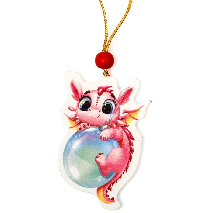 Ёлочная игрушка - подвеска деревянная «Новый год! Дракоша с шариком»