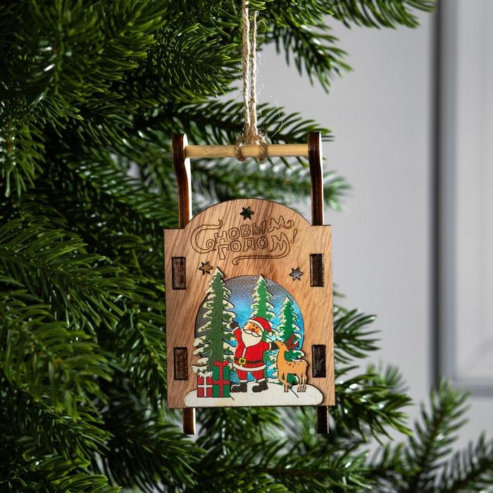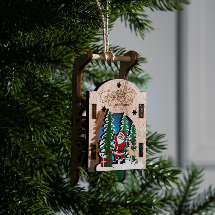 Ёлочная игрушка «Сани с Дедом Морозом», от батареек, свечение RGB