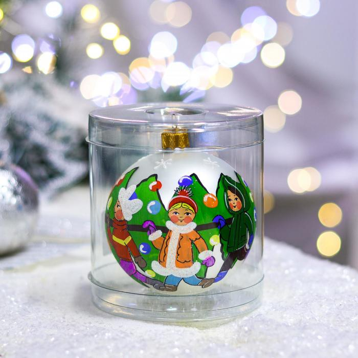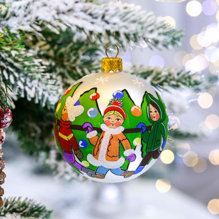 Ёлочная игрушка Шар «Хоровод», 80 мм, ручная роспись, стекло