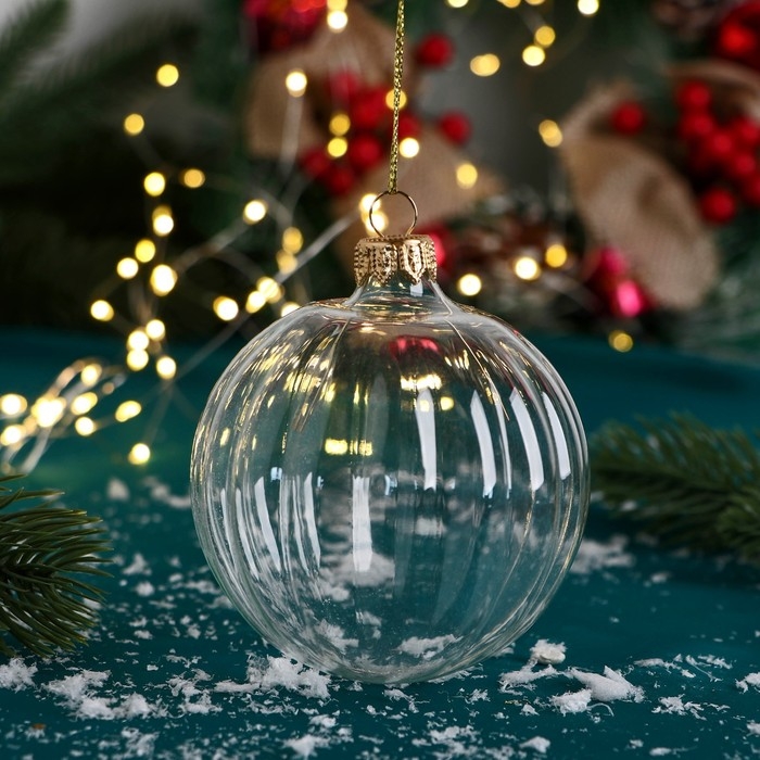 Ёлочная игрушка "Шарик" рифлённый, 8 см прозрачный