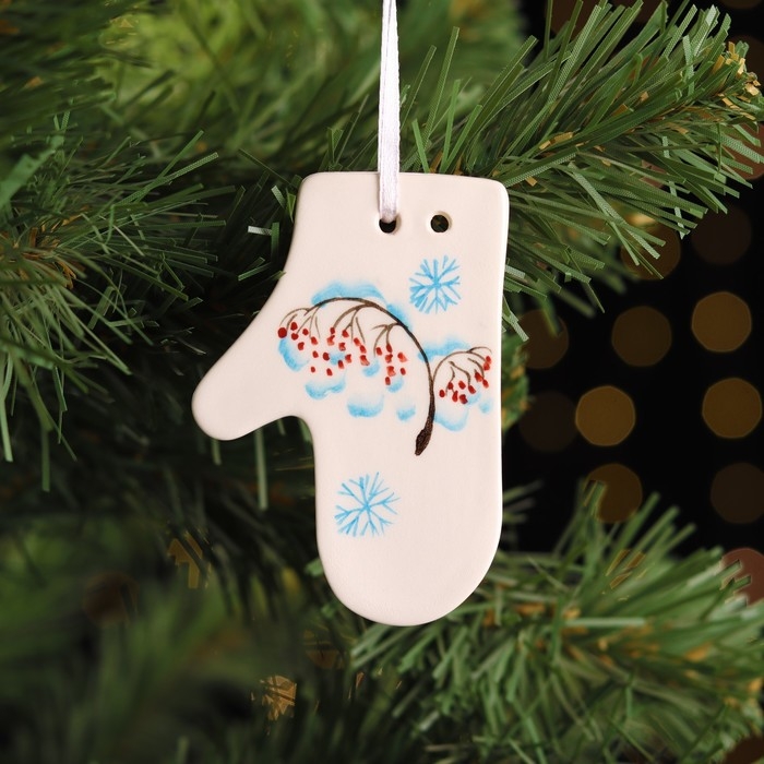 Ёлочная игрушка "Варежка", фаянс, 8х5,5х0,8 см