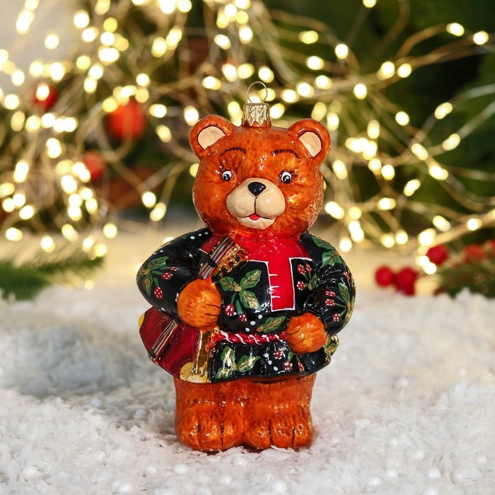 Елочное украшение "Мишка с балалайкой" 15 см, микс