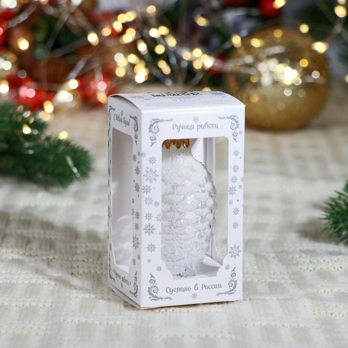 Ёлочное украшение "Шишка в снегу" микс, в подарочной упаковке, h-8см