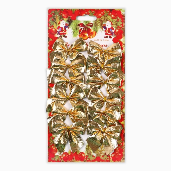 Ёлочные игрушки новогодние «Бантики», на Новый год, цвет золотой