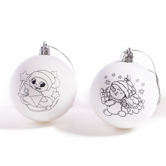 Ёлочные шары под раскраску на новый год «Исполнения желаний», d = 7 см, 2 шт, новогодний набор для творчества