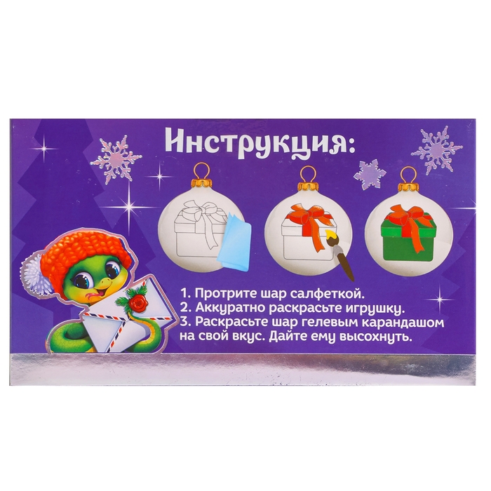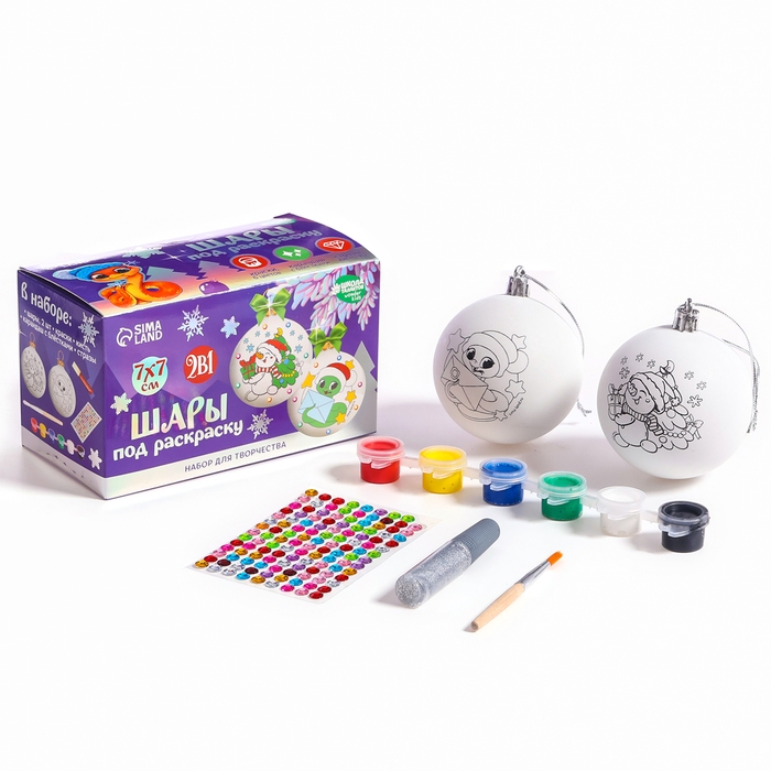 В наборе шары с нанесённым рисунком. Вам остаётся лишь проявить фантазию и раскрасить их на свой вкус. Набор шаров также станет прекрасным подарком друзьям и близким.