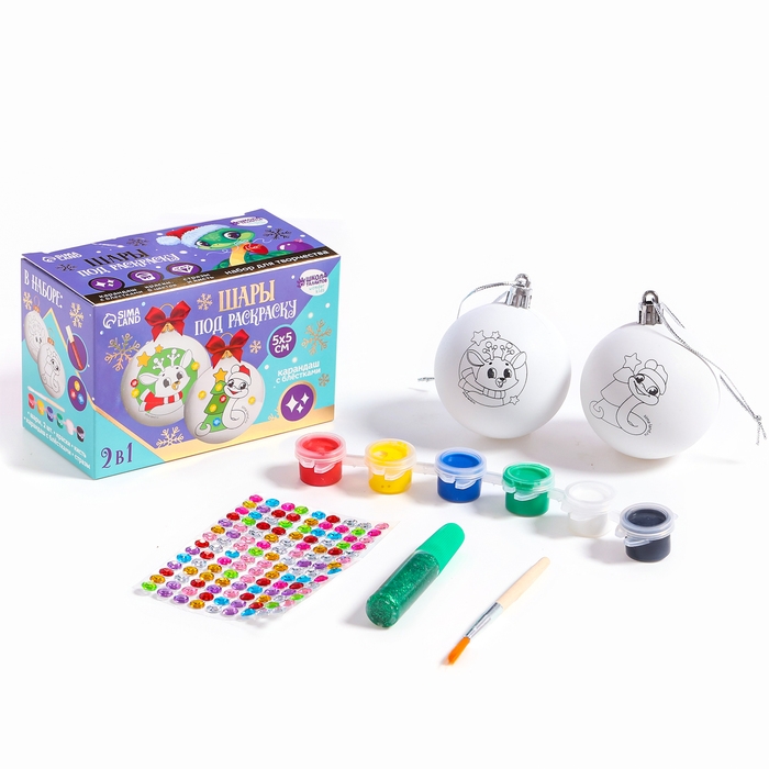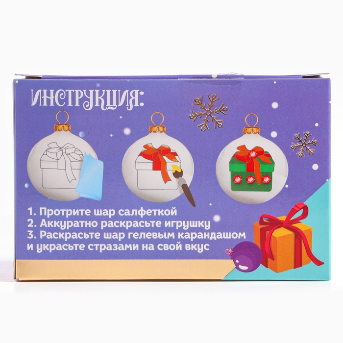 В наборе шары с нанесённым рисунком. Вам остаётся лишь проявить фантазию и раскрасить их на свой вкус. Набор шаров также станет прекрасным подарком друзьям и близким.