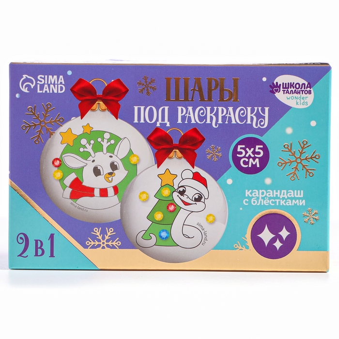 Ёлочные шары под раскраску на новый год «Змея», d = 5,5 см, новогодний набор для творчества