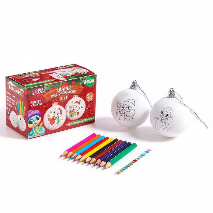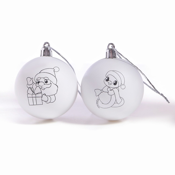 В наборе шары с нанесённым рисунком. Вам остаётся лишь проявить фантазию и раскрасить их на свой вкус. Набор шаров также станет прекрасным подарком друзьям и близким.