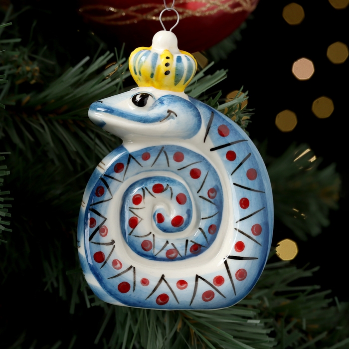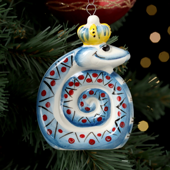Ёлочный фарфоровая игрушка "Змей", крепление петля, 9 см