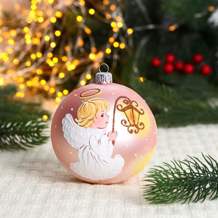 Ёлочный шар d-10 см "Ангел с фонариком"