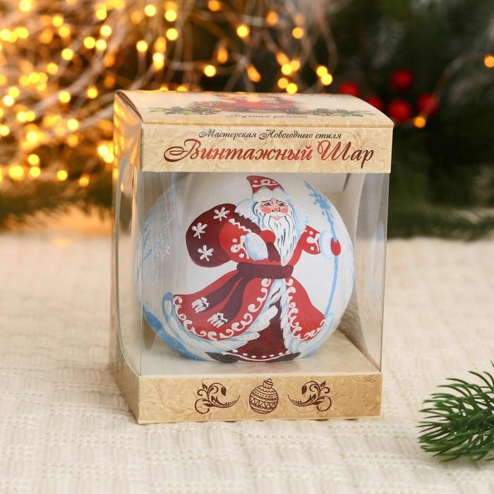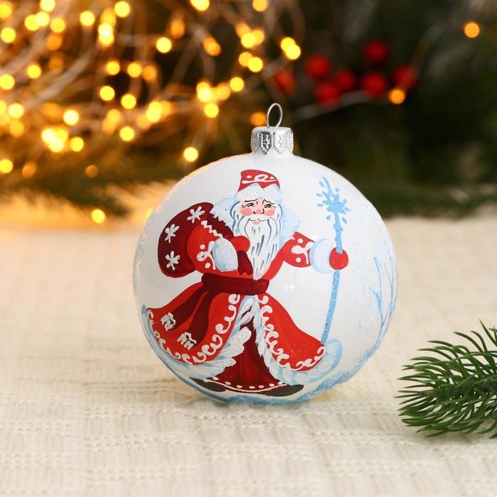 Ёлочный шар d-10 см "Дед Мороз с посохом и мешком"