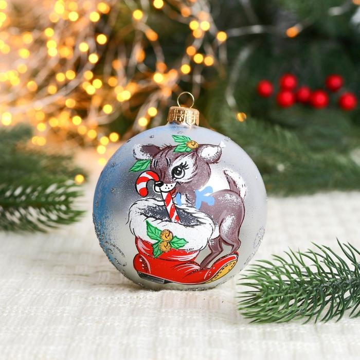 Ёлочный шар d-10 см "Оленёнок с карамелькой"