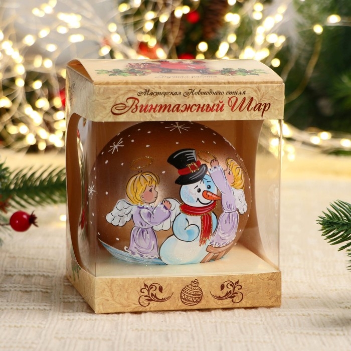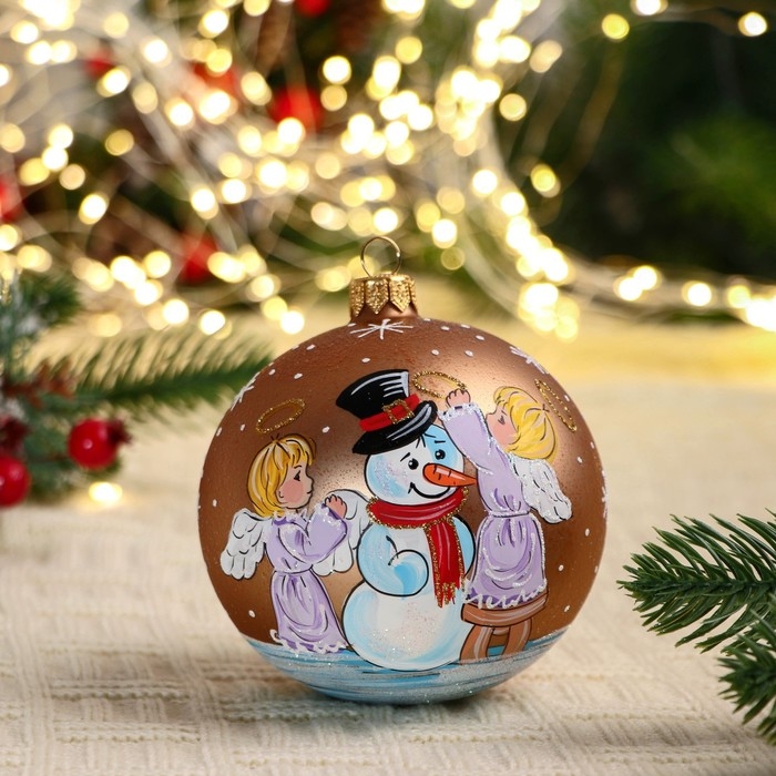 Ёлочный шар d-10 см "Снеговик с ангелочками"