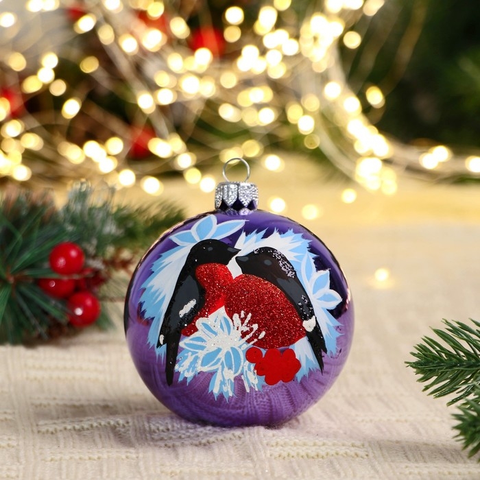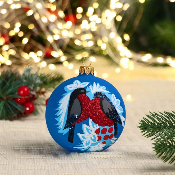 Ёлочный шар d-8 см "Снегири"