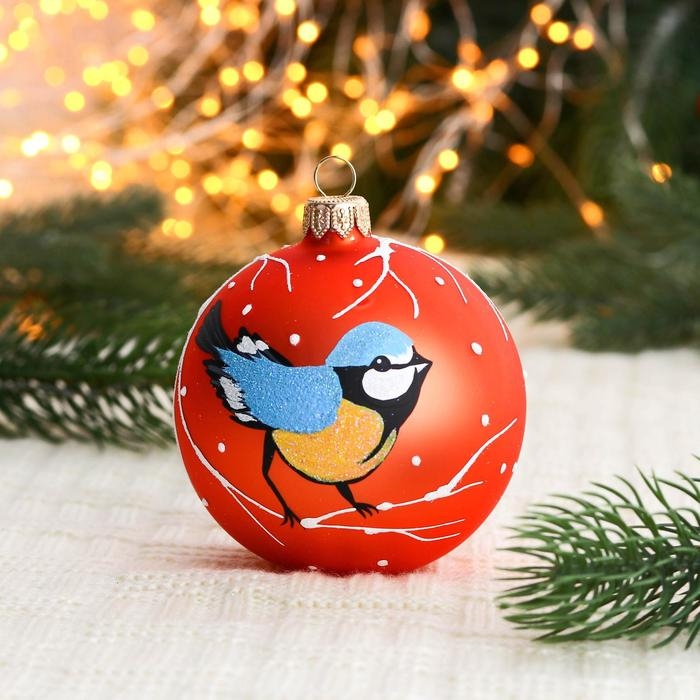 Ёлочный шар d-8 см "Желтогрудка"