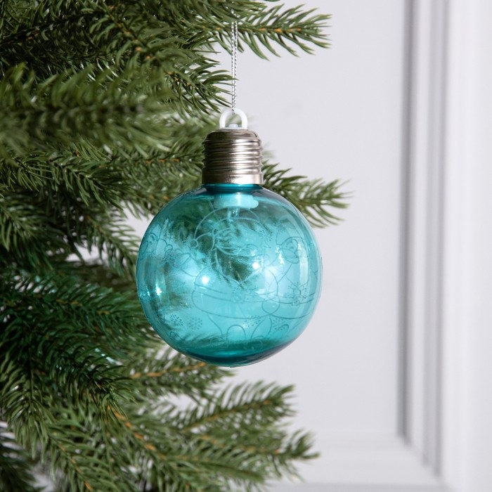 Ёлочный шар «Дед Мороз» голубой, батарейки, 1 LED, свечение тёплое белое