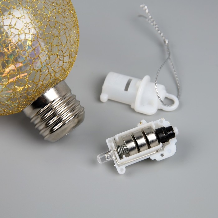 Елочный шар «Ледяной узор» d=8 cм, 1 LED, LR44x3 (в комплекте), свечение тёплое белое
