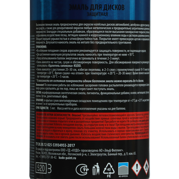 Высококачественная эмаль KUDO предназначена для окраски колесных дисков автомобилей, автобусов и других транспортных средств; декоративной окраски любых металлических и предварительно загрунтованных деревянных поверхностей.