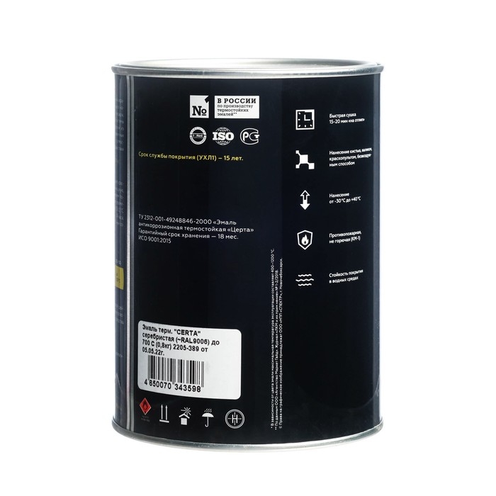 Эмаль термостойкая «Церта», ж/б, до 650 °С, 0,8 кг, серебристая