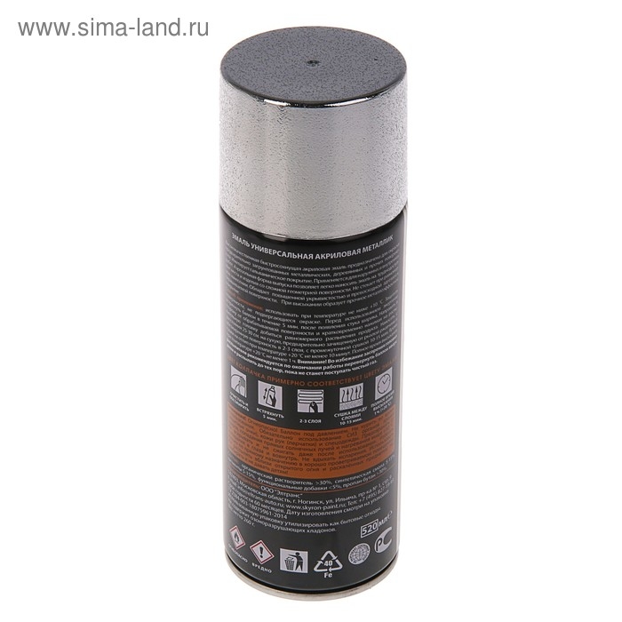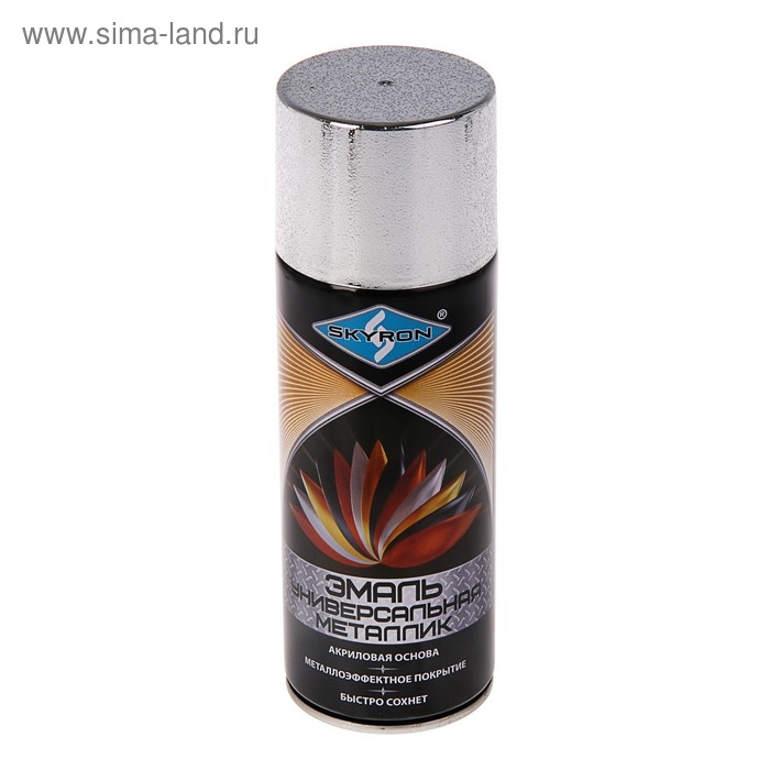 Эмаль универсальная металлик акриловая SKYRON, серебро, 520 мл.