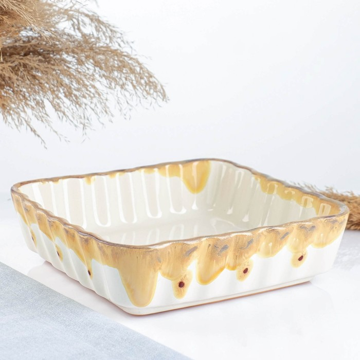Емкость для запекания "Волна квадратная" 1,5л / 6,5х23х23см, карамель