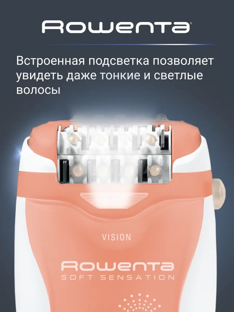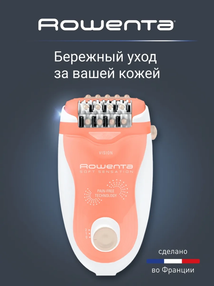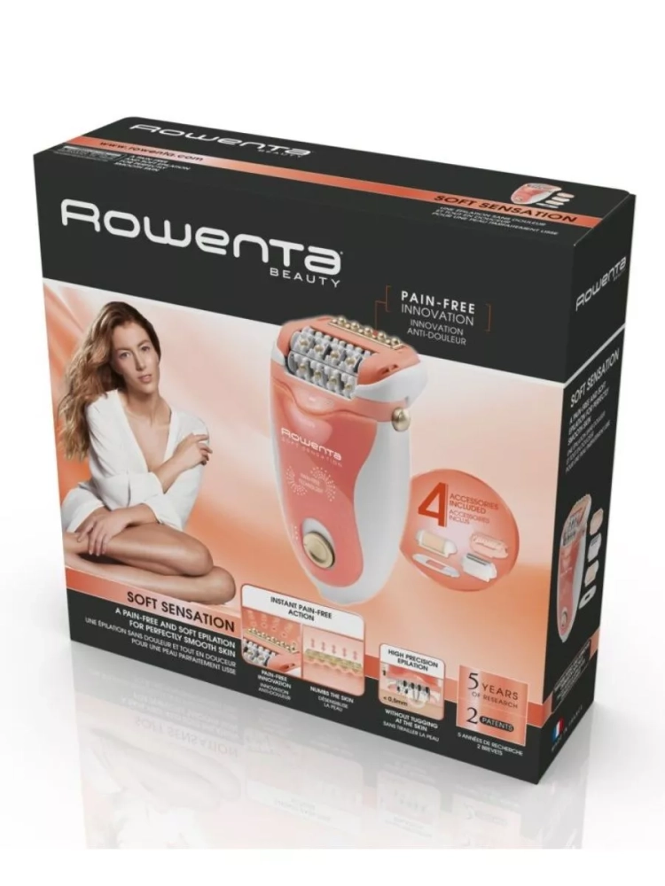Откройте для себя неповторимый и бережный уход за кожей в нежном эргономичном дизайне с эпилятором Soft Sensation от Rowenta!