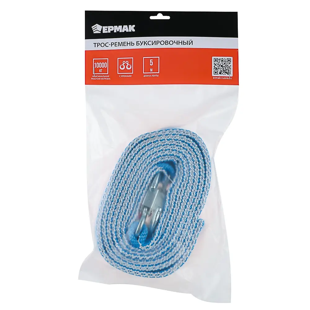 ЕРМАК / NG Трос-ремень буксировочный 10 т, в пакете, с крюками, 5м