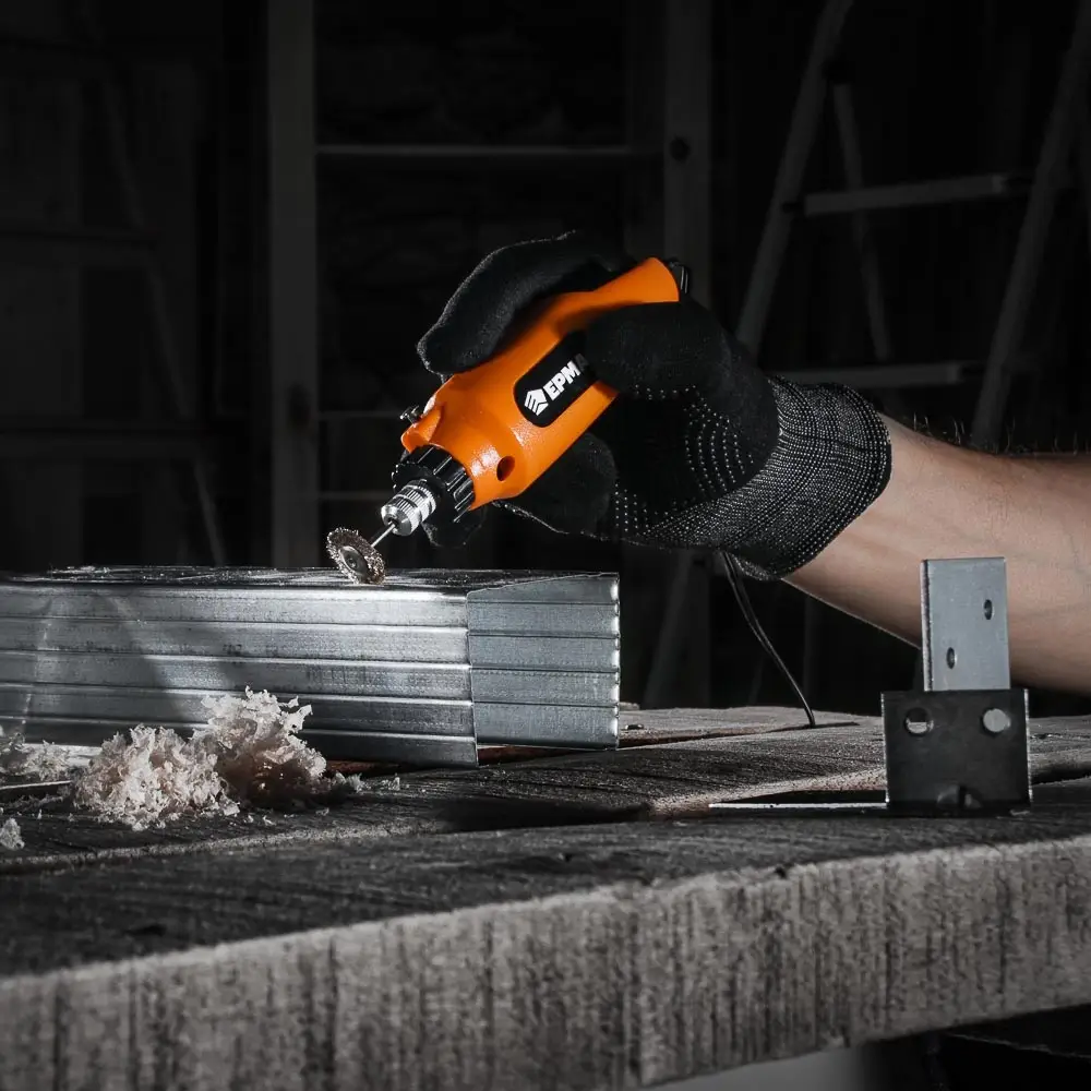 Гравер используется для тонких работ: нанесения гравировки, финишной шлифовки, сглаживания острых граней или заусенцев, сверления небольших отверстий. Несколько советов, облегчающие освоение инструмента: Надевайте плотную перчатку на руку, которая придерживает заготовку. Это убережёт вас от порезов и ссадин, а заготовку - от жирных пятен и отпечатков пальцев. Перед нанесением гравировки сделайте контур рисунка на заготовке карандашом или маркером. При гравировке сначала наносите основной узор, а после него переходите к прорисовке мелких деталей. Не стоит сильно давить на инструмент при нанесении рисунка, это испортит и оснастку, и сам гравер. Для глубоких узоров снимайте материал постепенно, небольшими слоями.