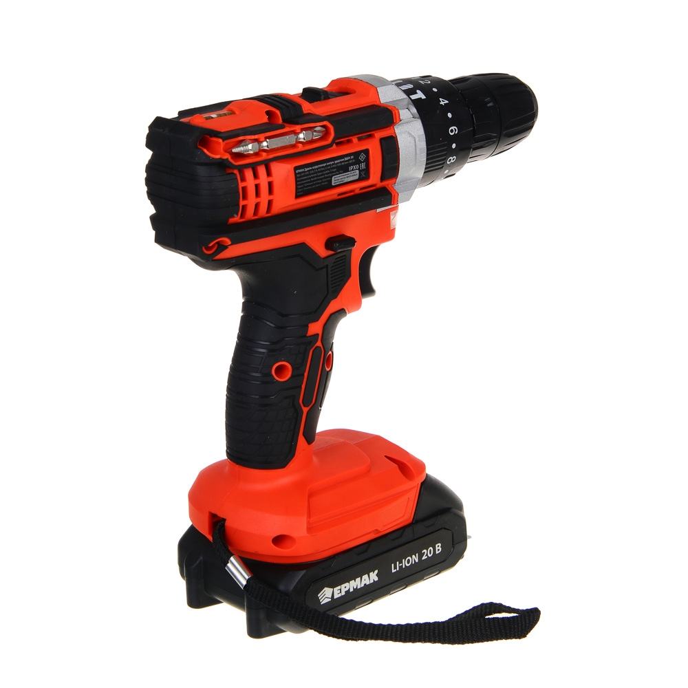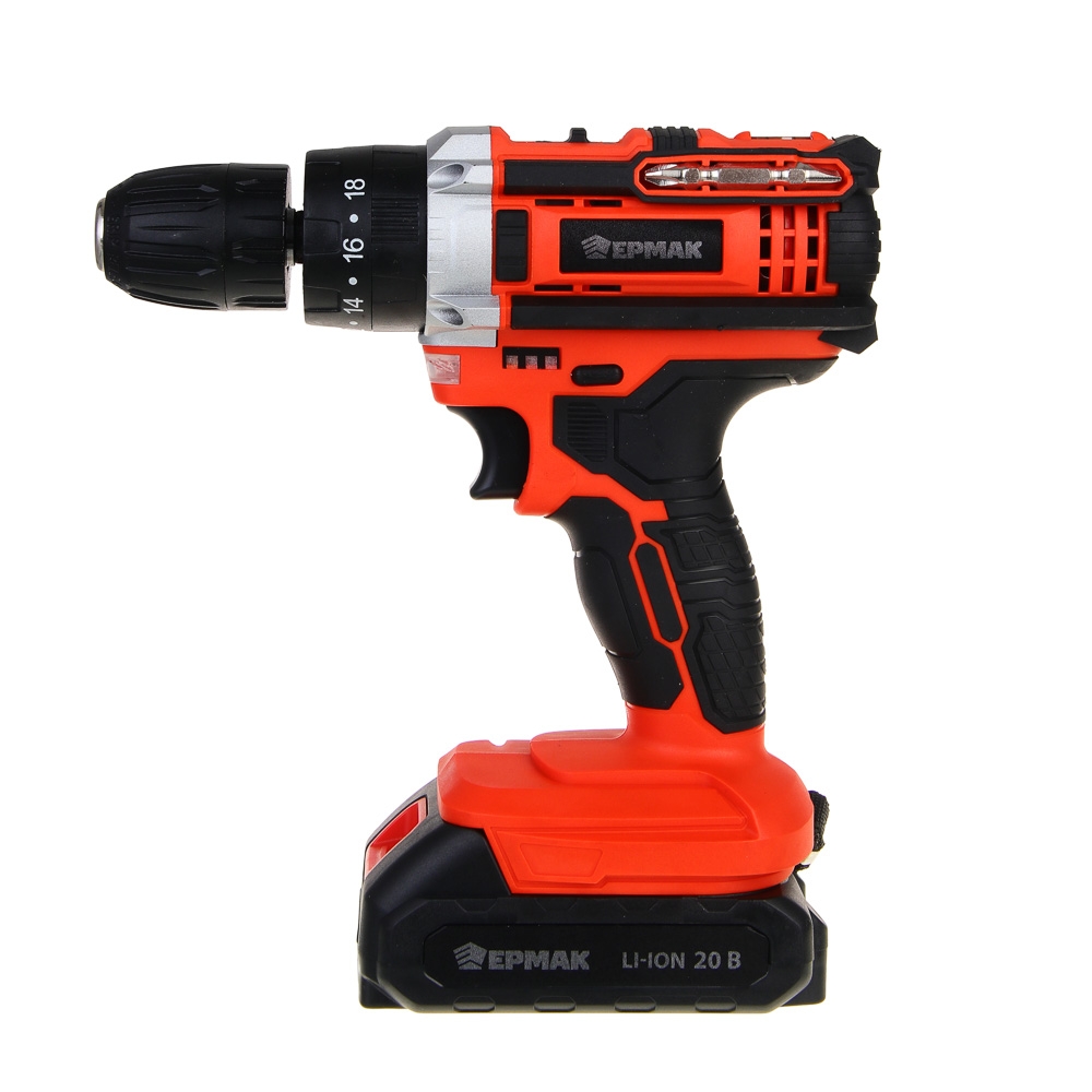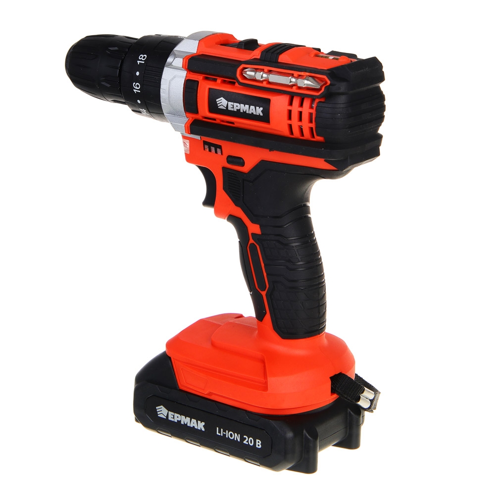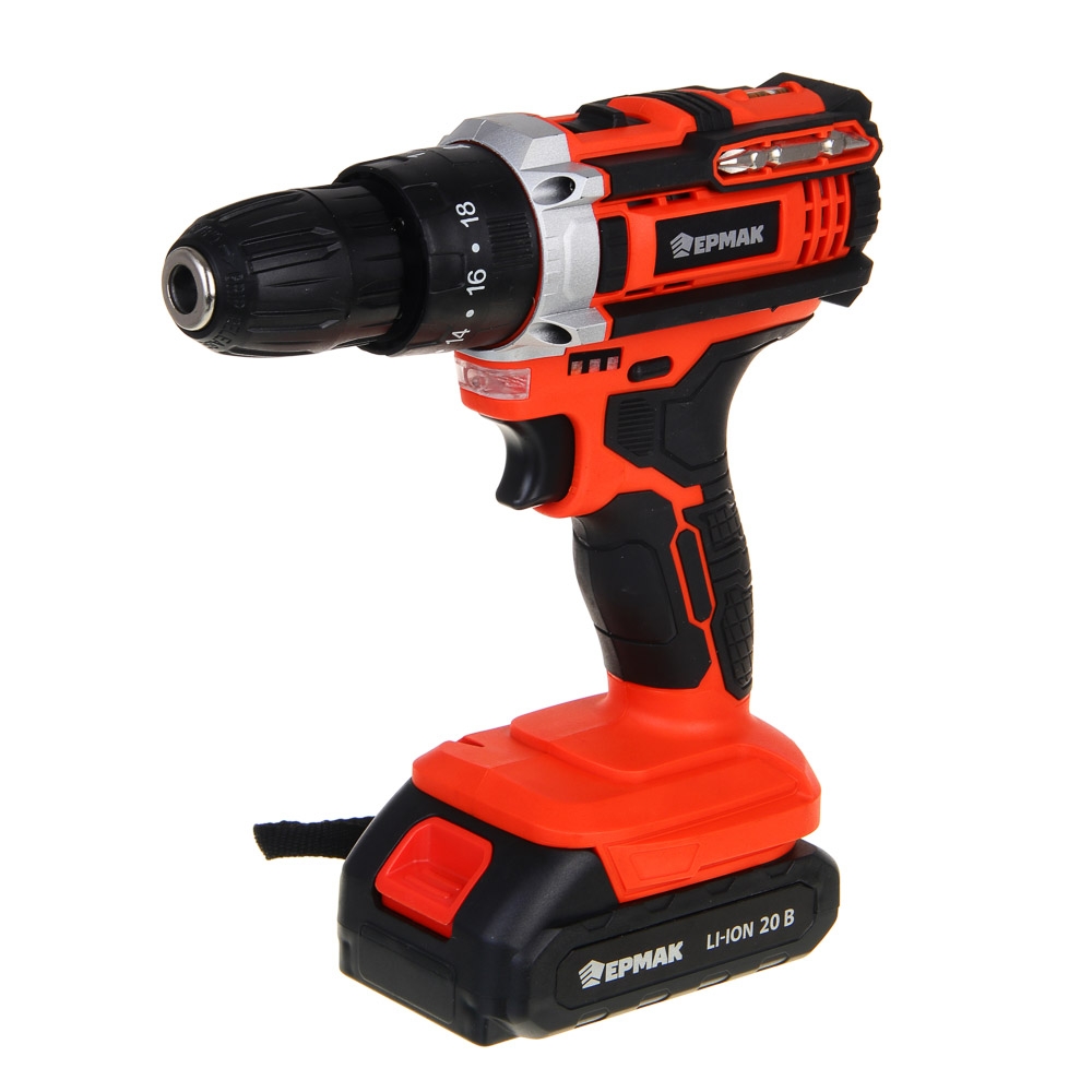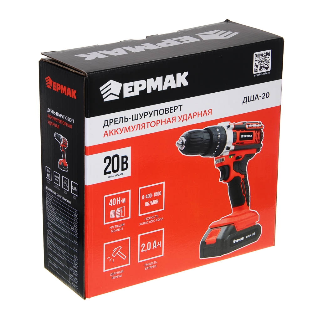ЕРМАК Дрель-шуруповерт аккум. ударный, ДША-20, 20В, 2А*ч, 0-400-1500 об.мин, 40 н*м (ONE)