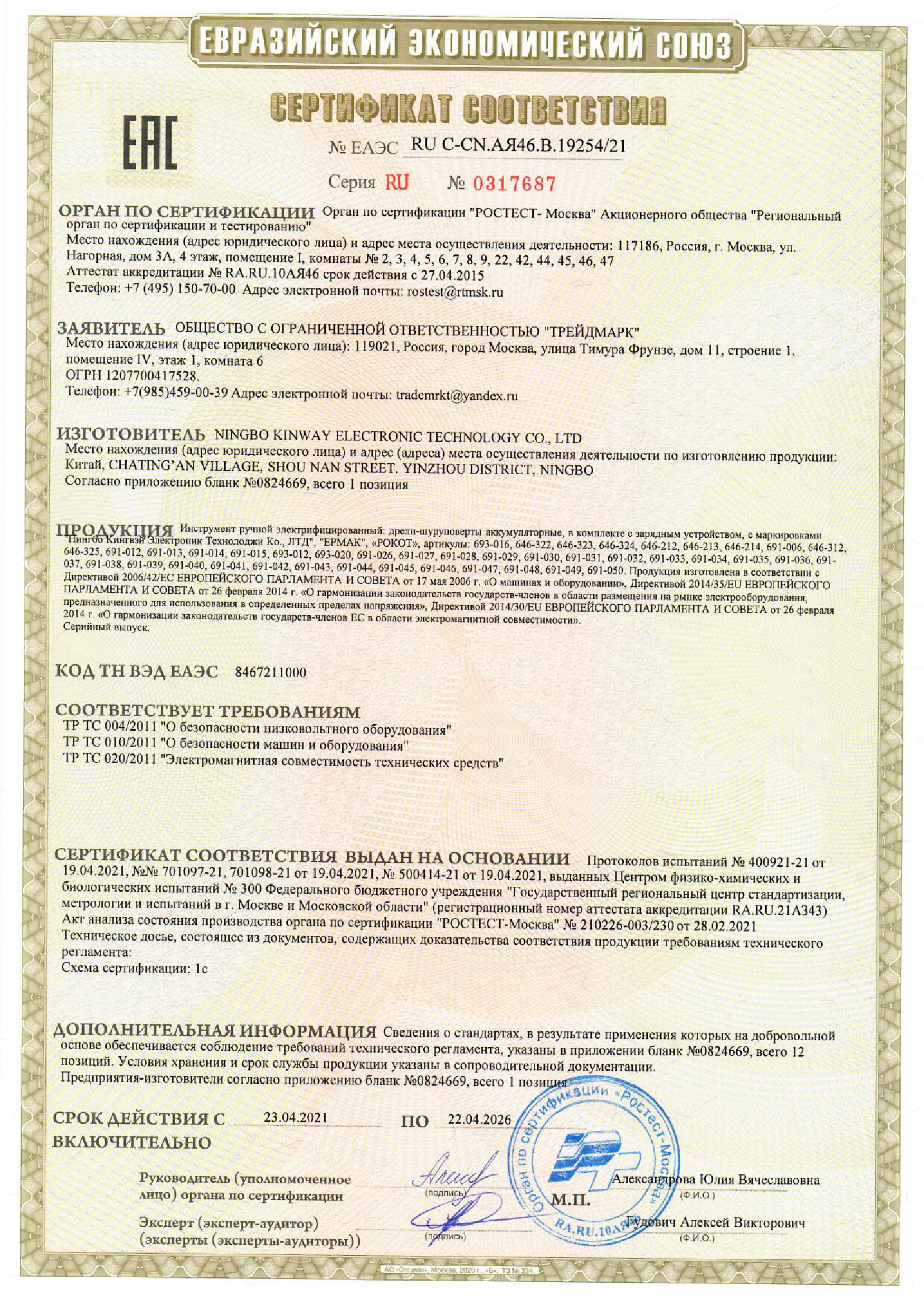 ЕРМАК Дрель-шуруповерт аккумуляторная ДША-12B, 0-550 об/мин, 1,3 Li-ion. 21 H*m, подсветка