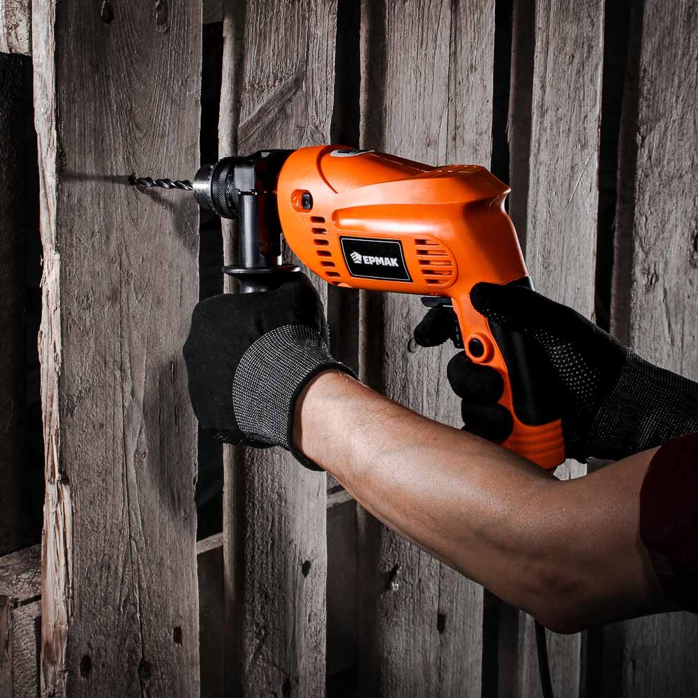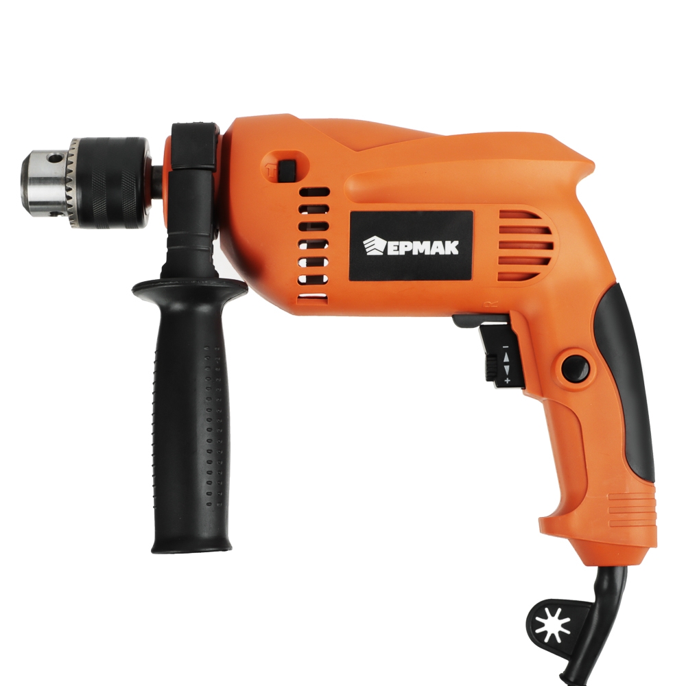 Электрическая ударная дрель ЕРМАК – это один самых важных и востребованных инструментов как в быту, так и в профессиональной работе. Прибор предназначен для сверления отверстий в различных материалах, в том числе в режиме сверления с ударом в бетоне, а также завинчивания и отвинчивания саморезов, болтов, винтов и шурупов при сборочных работах. Ударная дрель предусматривает 2 режима работы и реверс. Прибор имеет мощность 500 Вт и частоту ударов 46400 ударов в минуту.