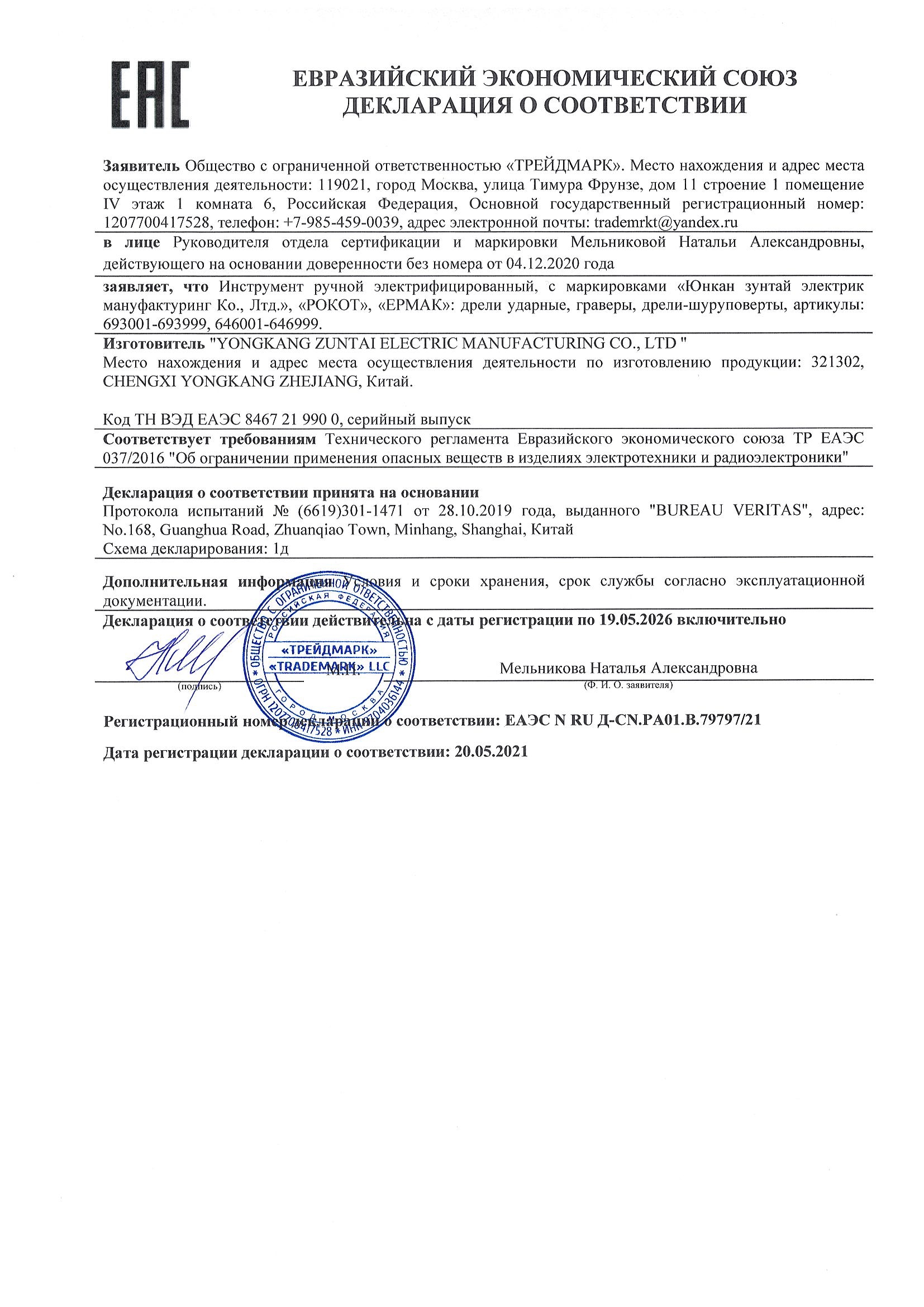 ЕРМАК Дрель ударная электр ДУ-500, 500Вт, 13мм, 0- 2900 об/мин, рег. скорости, реверс.