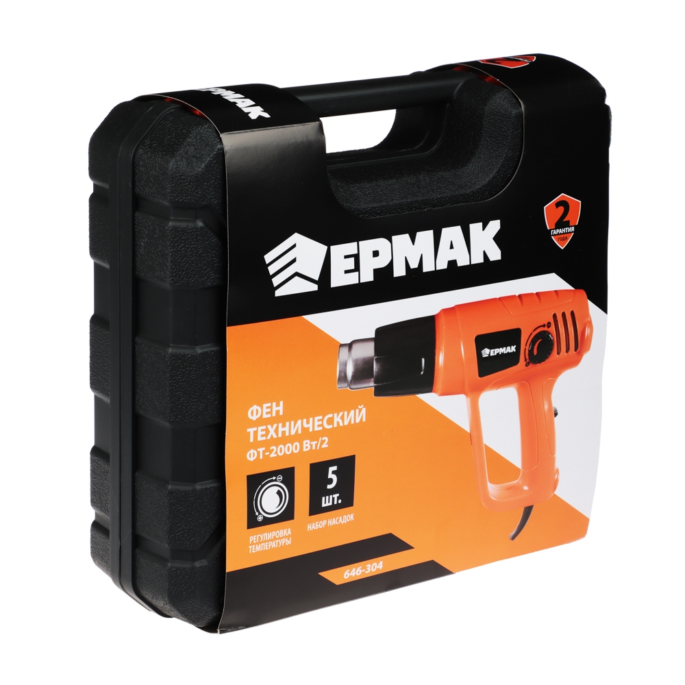 ЕРМАК Фен технический ФТ-2000Вт/2 (80C°-600C°), кейс 5 насадок