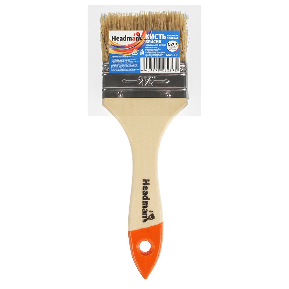 ЕРМАК Кисть малярная плоская "Бейсик" нат. щетина 2,5" (63мм)