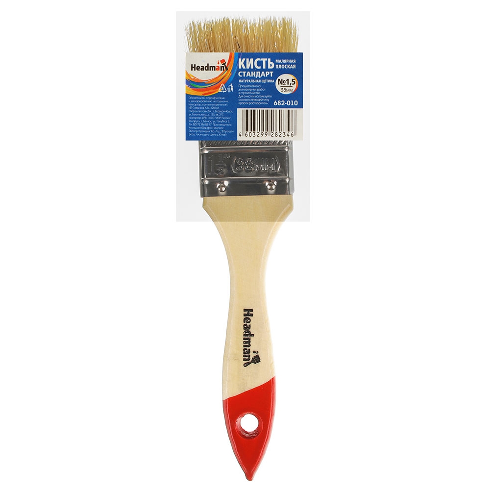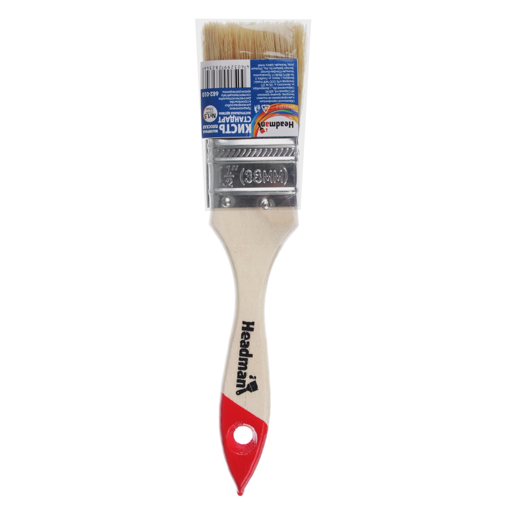 Кисть малярная плоская "Standart" натуральная щетина 1, 5" (38мм). Имеет прочную рукоятку и надежно закрепленную щетину, что позволяет досконально окрашивать любые гладкие и шероховатые поверхности, профилированная рукоять облегчает удержание кисти в руках. А за счет высокой плотности щетины, впитываемость повышается и краска равномерно распределяется по поверхности.