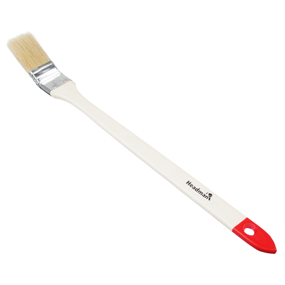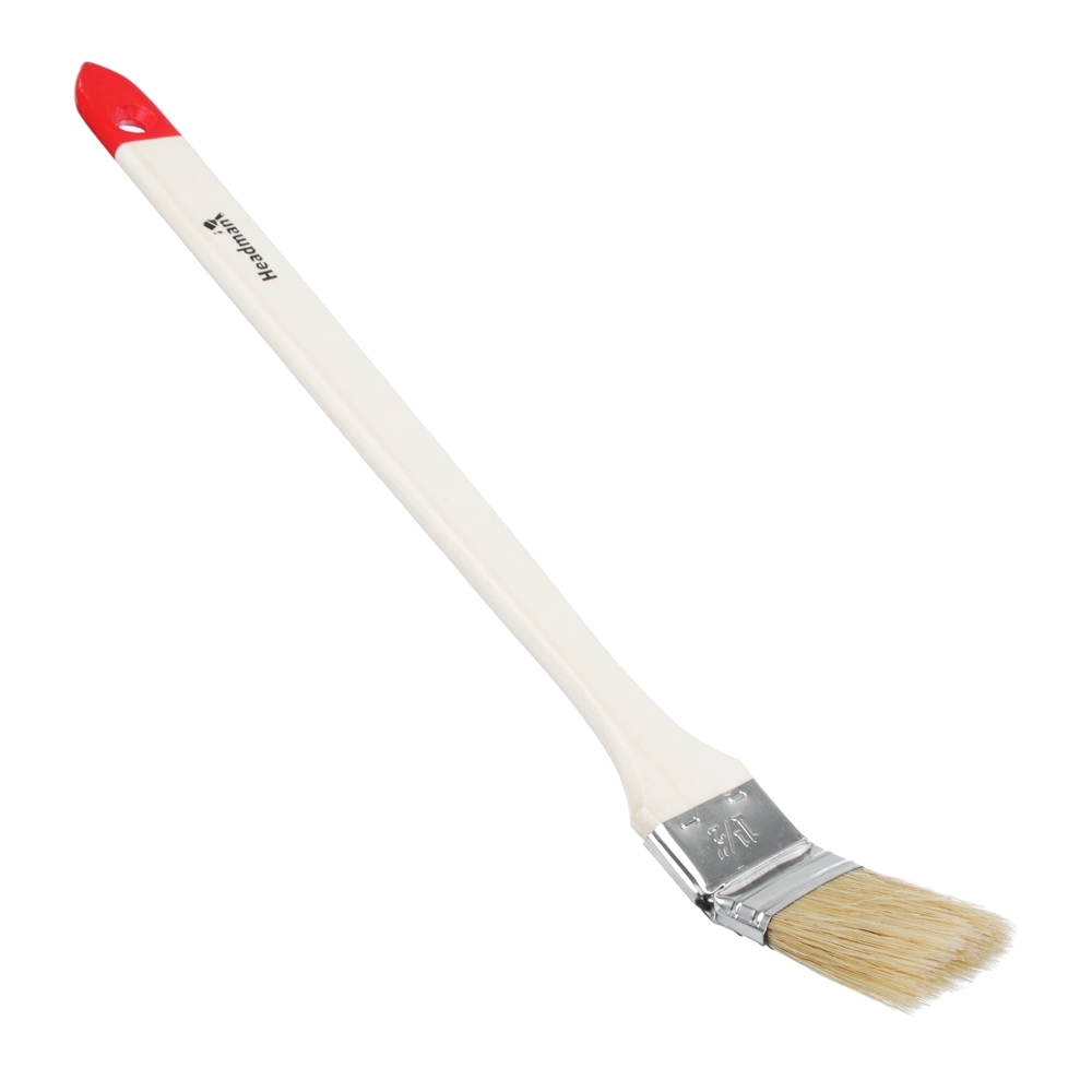 Кисть радиаторная, натуральная щетина, деревянная рукоятка, 1, 25 мм. Радиаторная кисть предназначена для малярных работ в труднодоступных местах. Подходит для окраски радиаторов и мест соединения труб. Кисть имеет длинную ручку, слегка изогнутую под углом по отношению к красящей головке, что обеспечивает легкий доступ кисти во все углы при окрашивании. Подходит для прокрашиания щелей, стыков стен, углов. Благодаря этой кисти, Вы получите идеально прокрашенную поверхность без каких-либо пробелов.