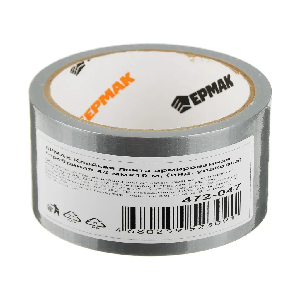 ЕРМАК Клейкая лента армированная серебряная 48мм х 10м, (инд.упаковка)