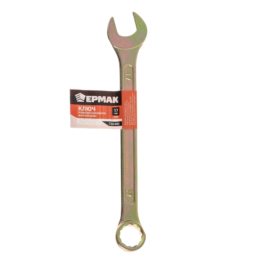 ЕРМАК Ключ рожково-накидной, 17мм, желтый цинк