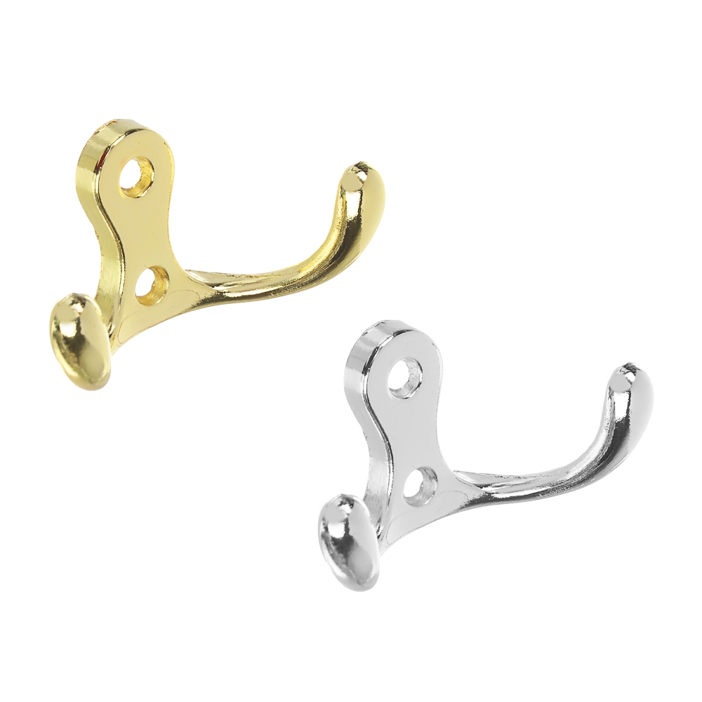 Металлический настенный крючок ЕРМАК 1010 CP – это компактное приспособление для подвешивания различных предметов. Двойной крючок из толстого прочного металла выдерживает высокие нагрузки и может использоваться в прихожей, гардеробной, в гараже или мастерской для верхней одежды, пакетов или сумок, аксессуаров, ключей, зонтов и многого другого. Изделие имеет хромированное защитное покрытие, не подвержено коррозии. В набор включен монтажный комплект из двух саморезов. Доступно 2 цвета: золото, металл.