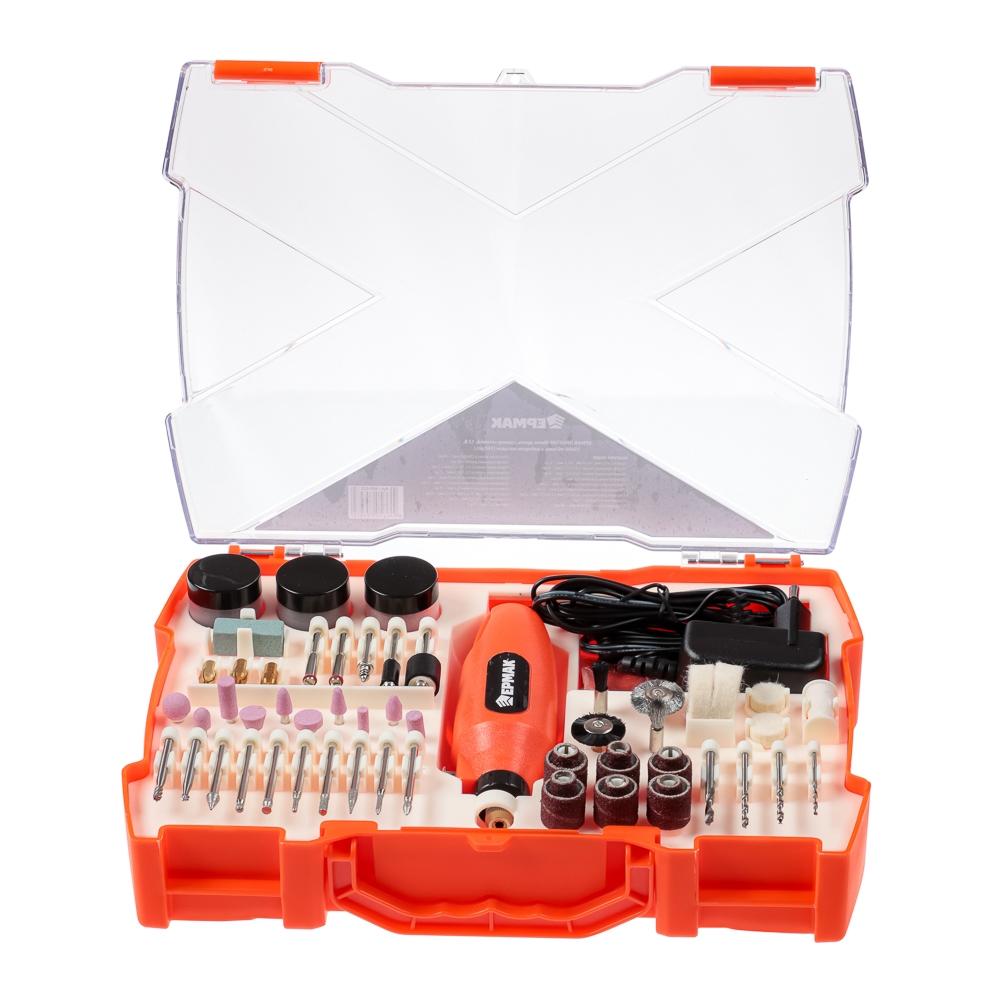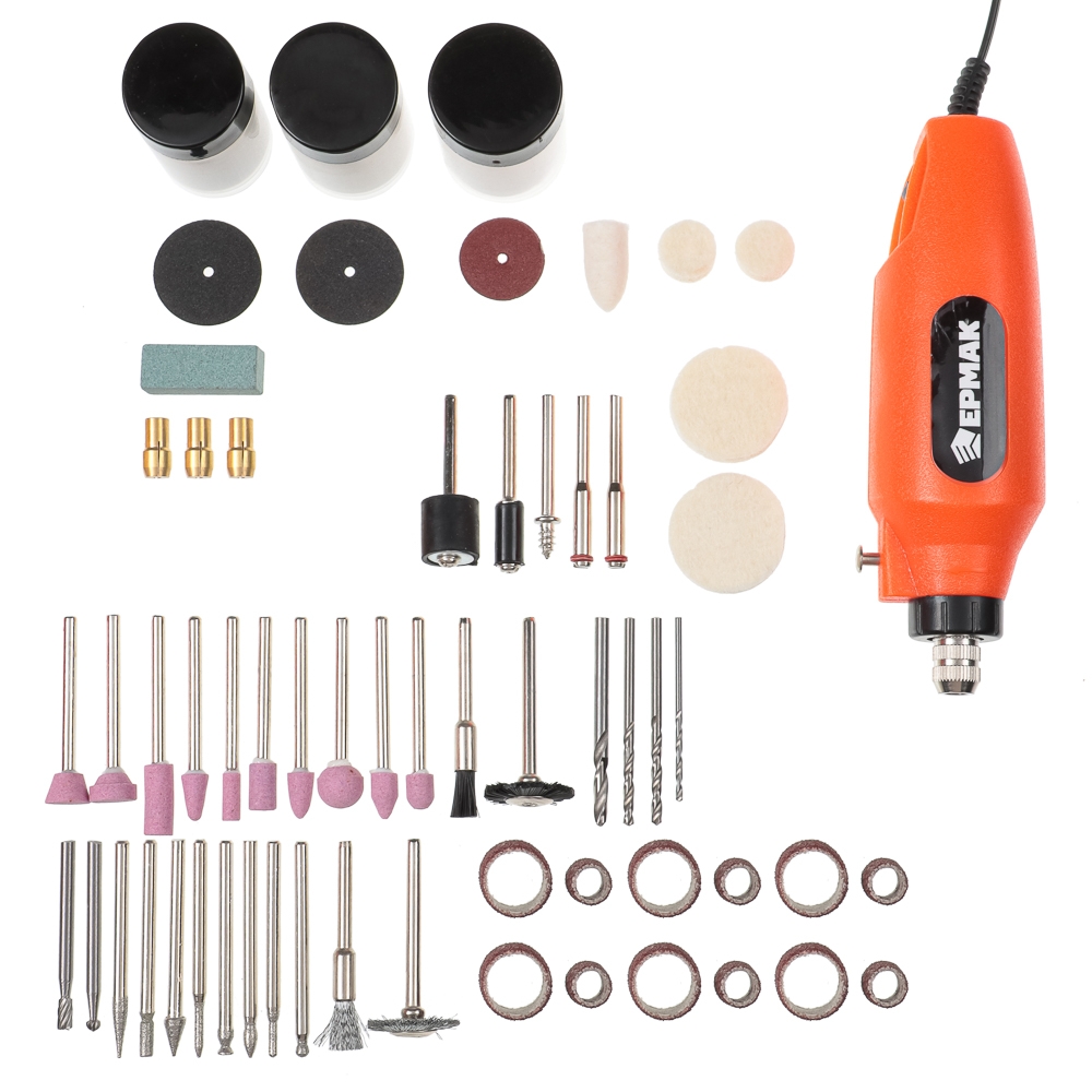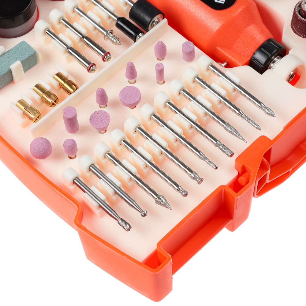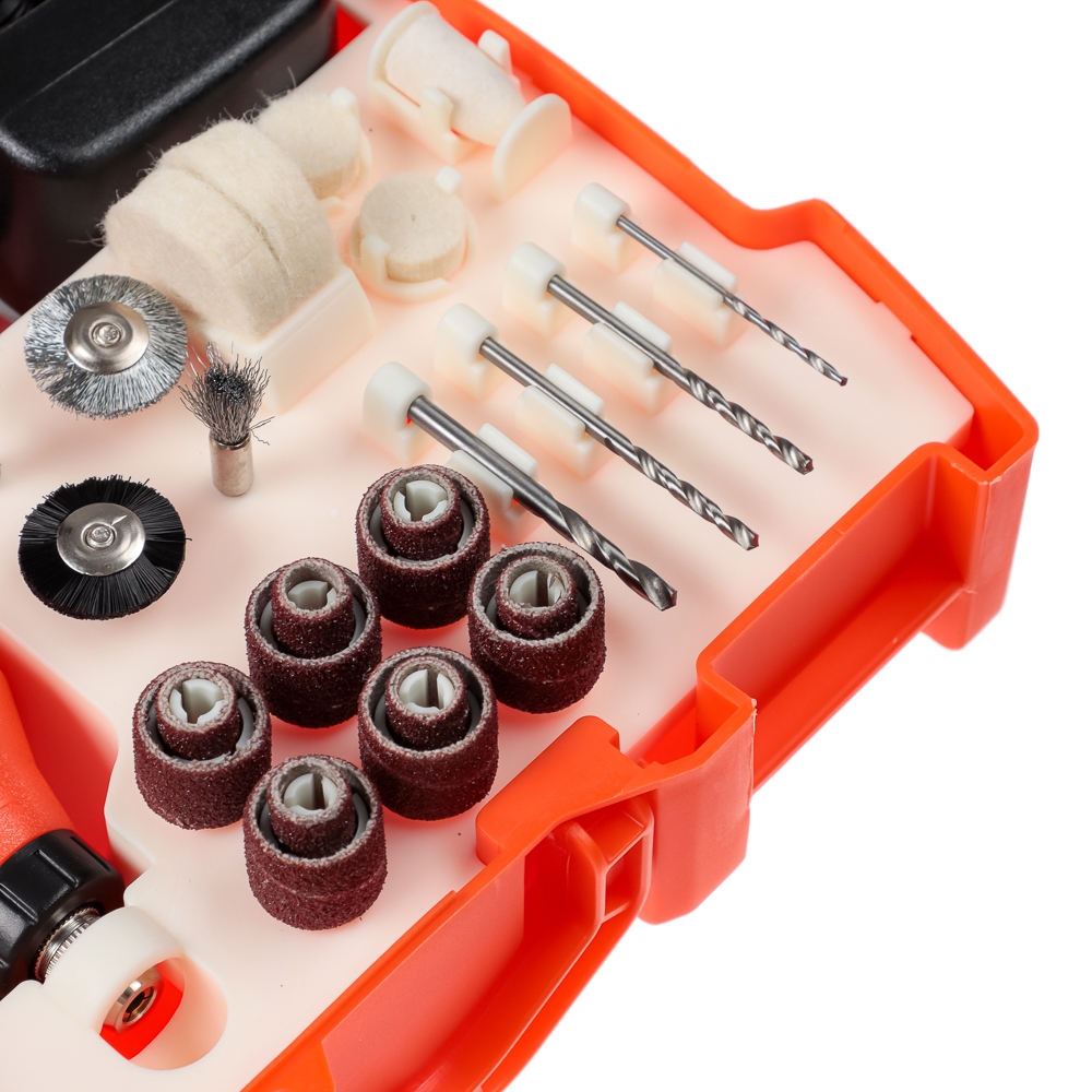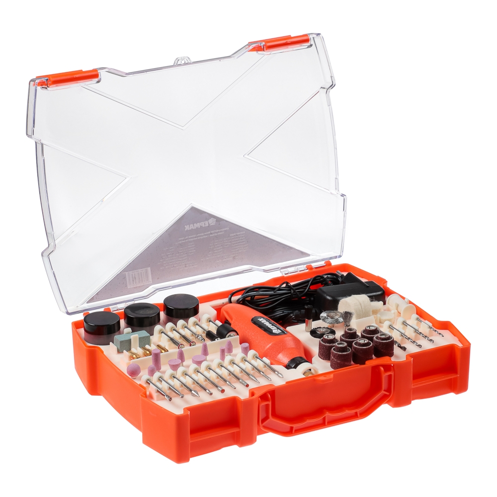 ЕРМАК Мини дрель, гравер, сетевой, 12В, 15000 об/мин, с набором насадок (160 шт.)