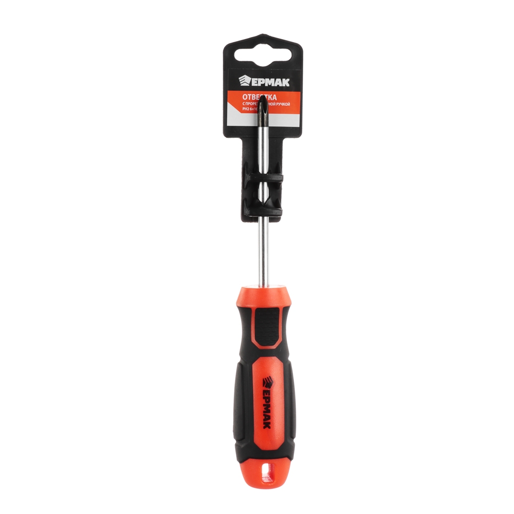 ЕРМАК Отвертка с прорезиненной ручкой PH2 6х100мм, намагниченный шлиц