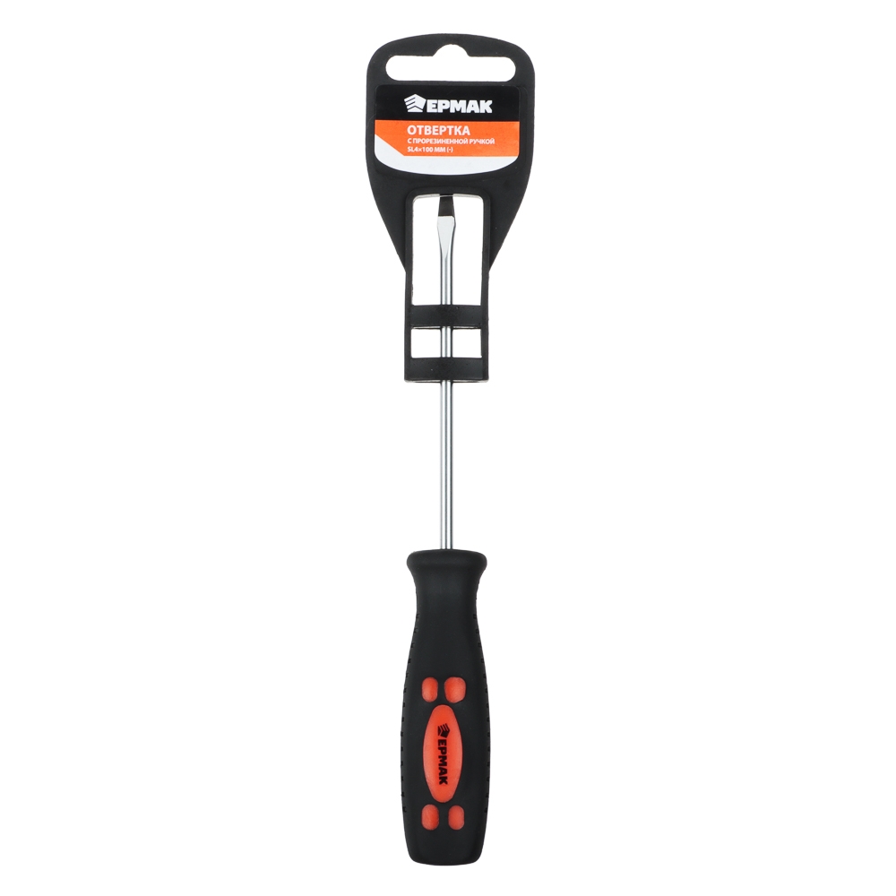 ЕРМАК Отвертка с прорезиненной ручкой SL 4х100мм
