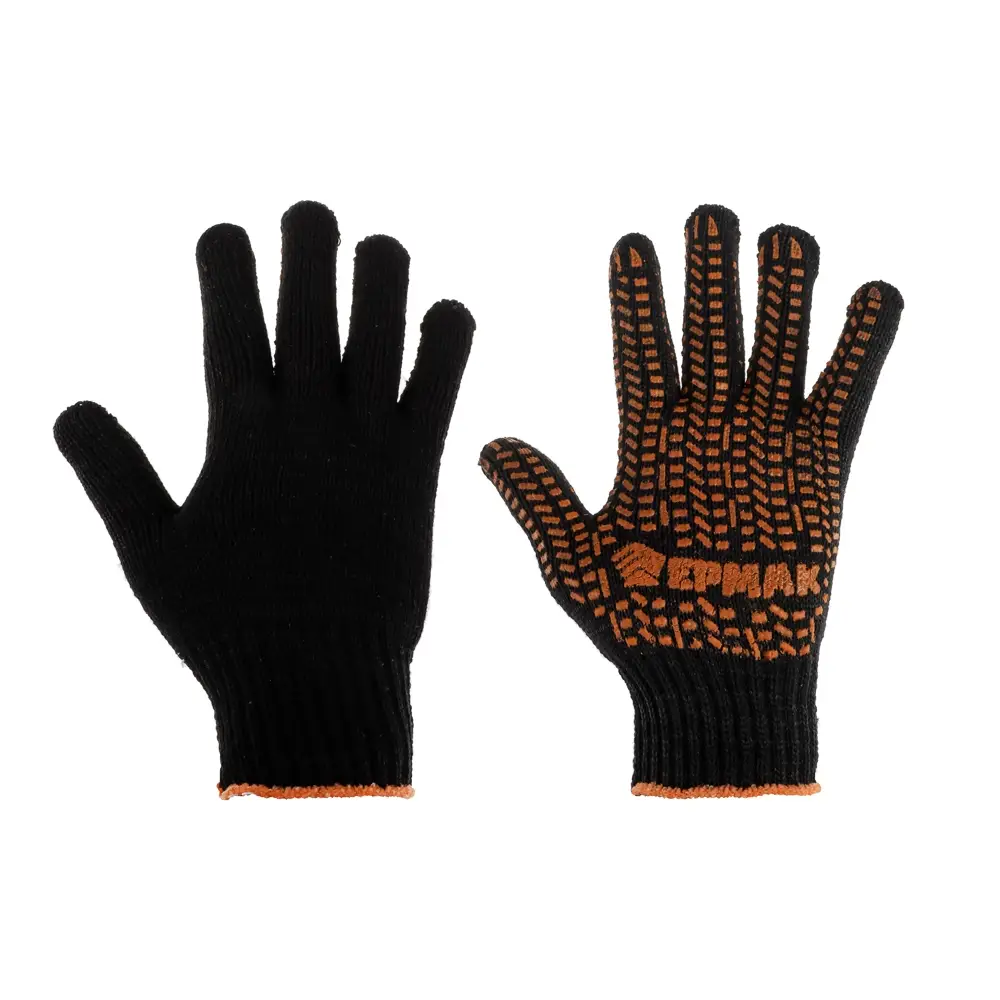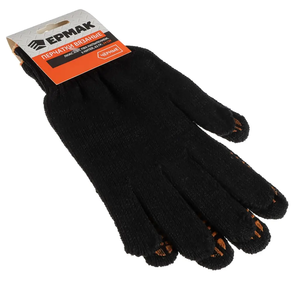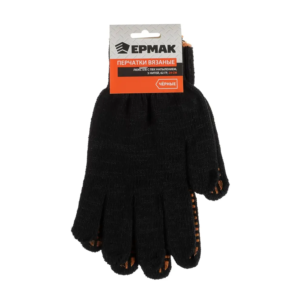 ЕРМАК Перчатки вязаные ЛЮКС х/б с ПВХ напылением, 5 нитей, черные, 62гр, 24см, подвес