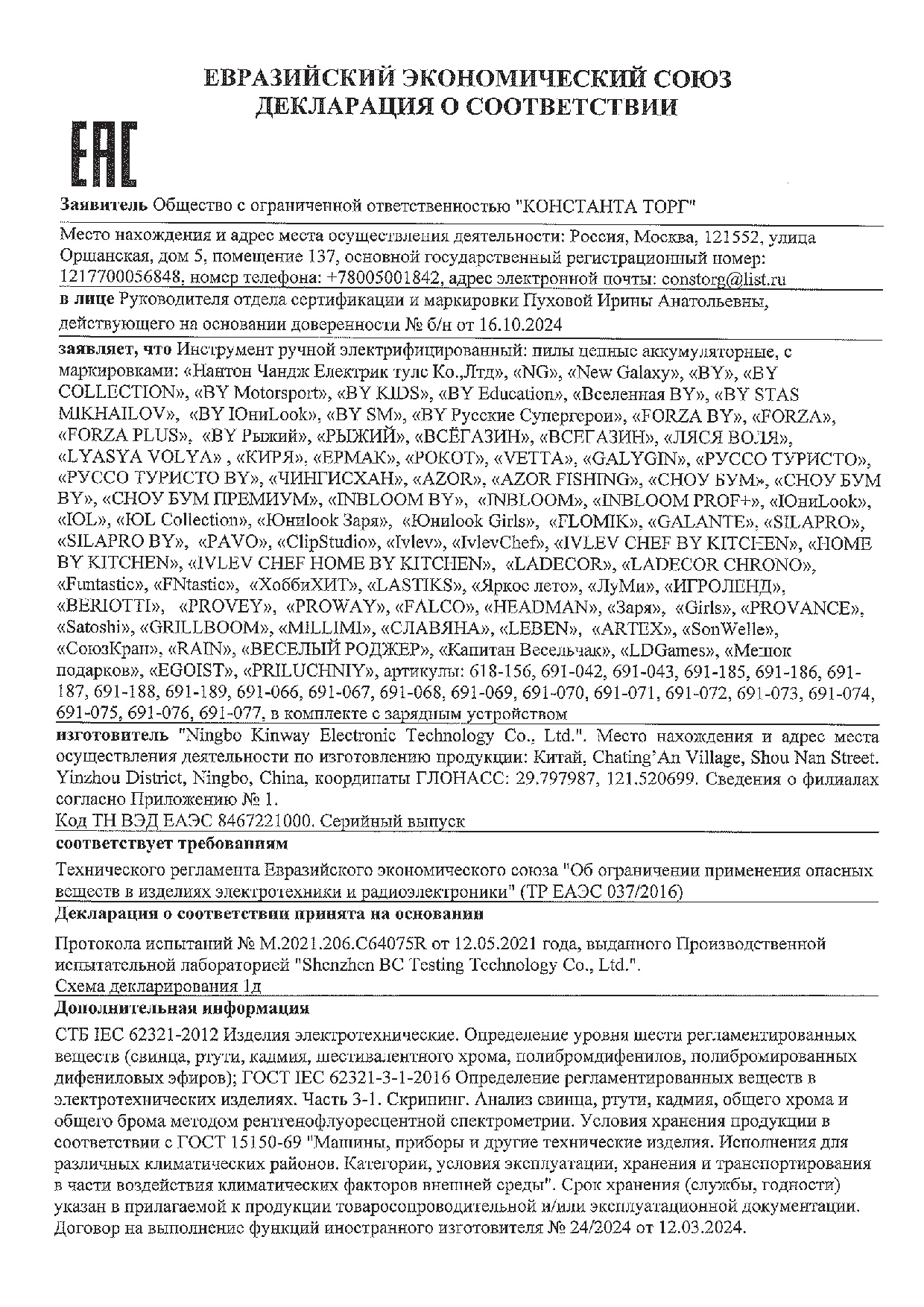 - Тип товара Электропила