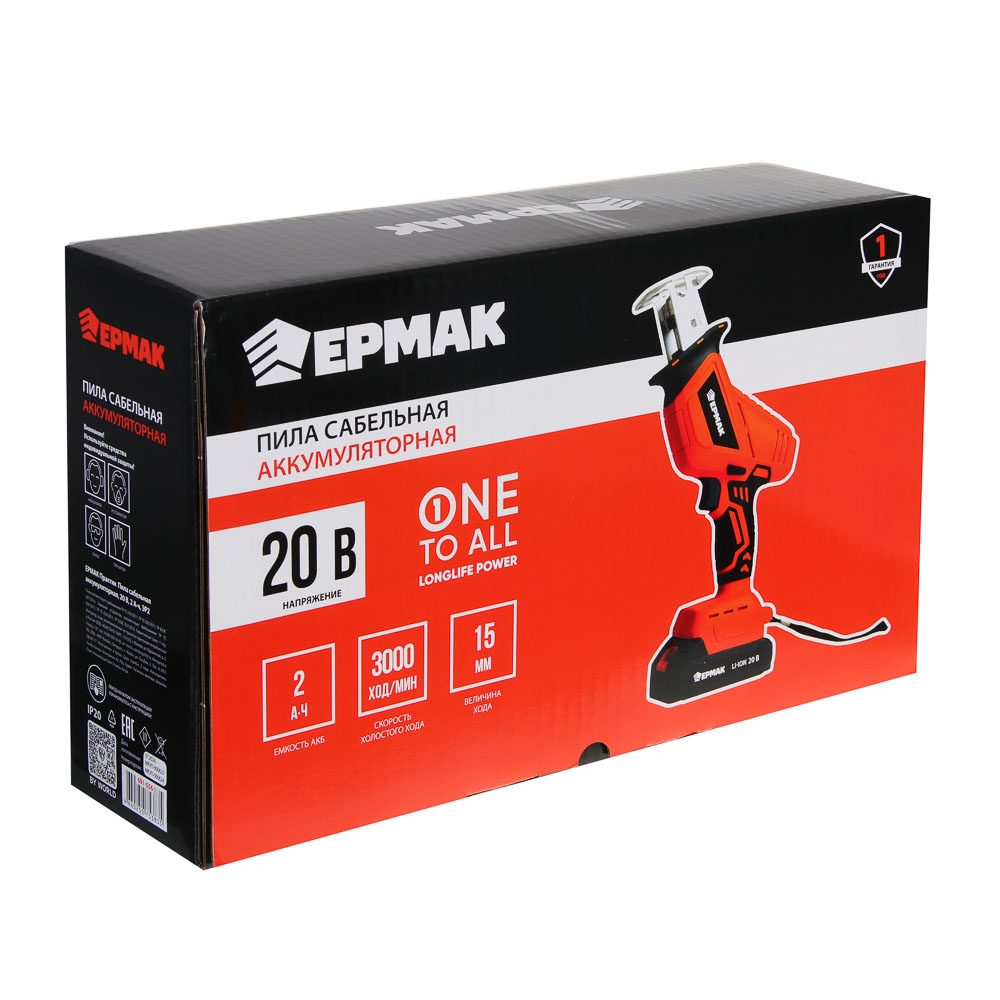 ЕРМАК Пила сабельная аккумуляторная 20В 2А ЭР2 (ONE)