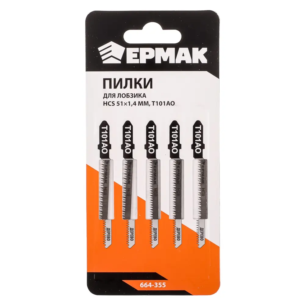 ЕРМАК Пилки для эл.лобзика (HCS EU 51х1,4мм.) T-101АО (дер., ламинат.,фиг.рез.), 5шт.