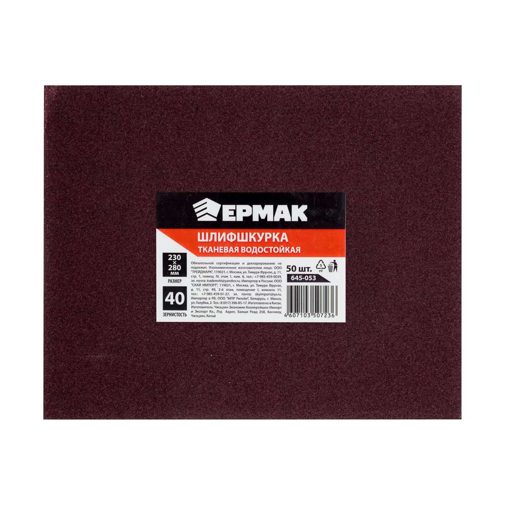 ЕРМАК Шлиф-шкурка на тканевой основе водостойкая 230*280 №40 (цена за 1 лист, в спайке 50 листов)