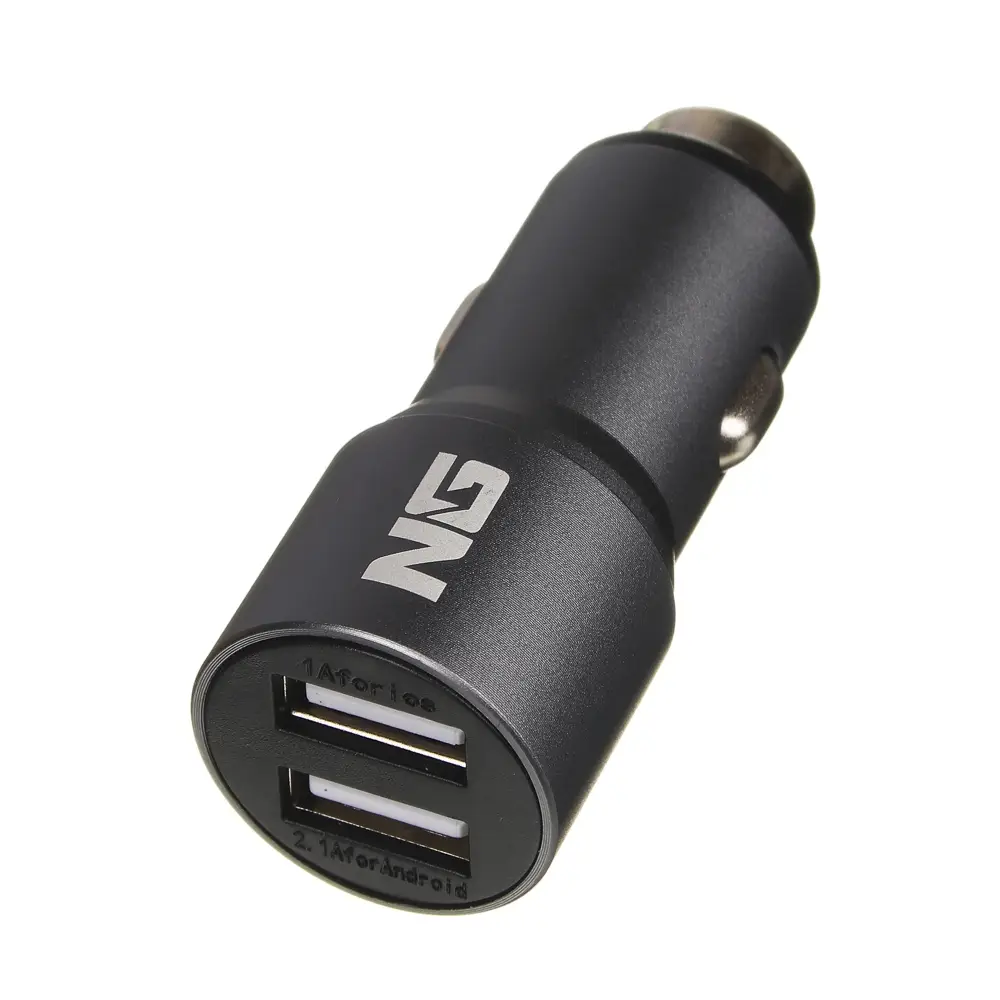Автомобильное зарядное устройство совместимо с любыми транспортными средствами с напряжением в бортовой сети 12/24 В. Вставляется в гнездо прикуривателя. Имеет надежный и прочный металлический корпус, который может применяться для аварийного разбития стекла. Предусмотрена защита от короткого замыкания. Оснащено двумя USB-портами. Подходит для зарядки мобильных устройств с выходным током 2 А.